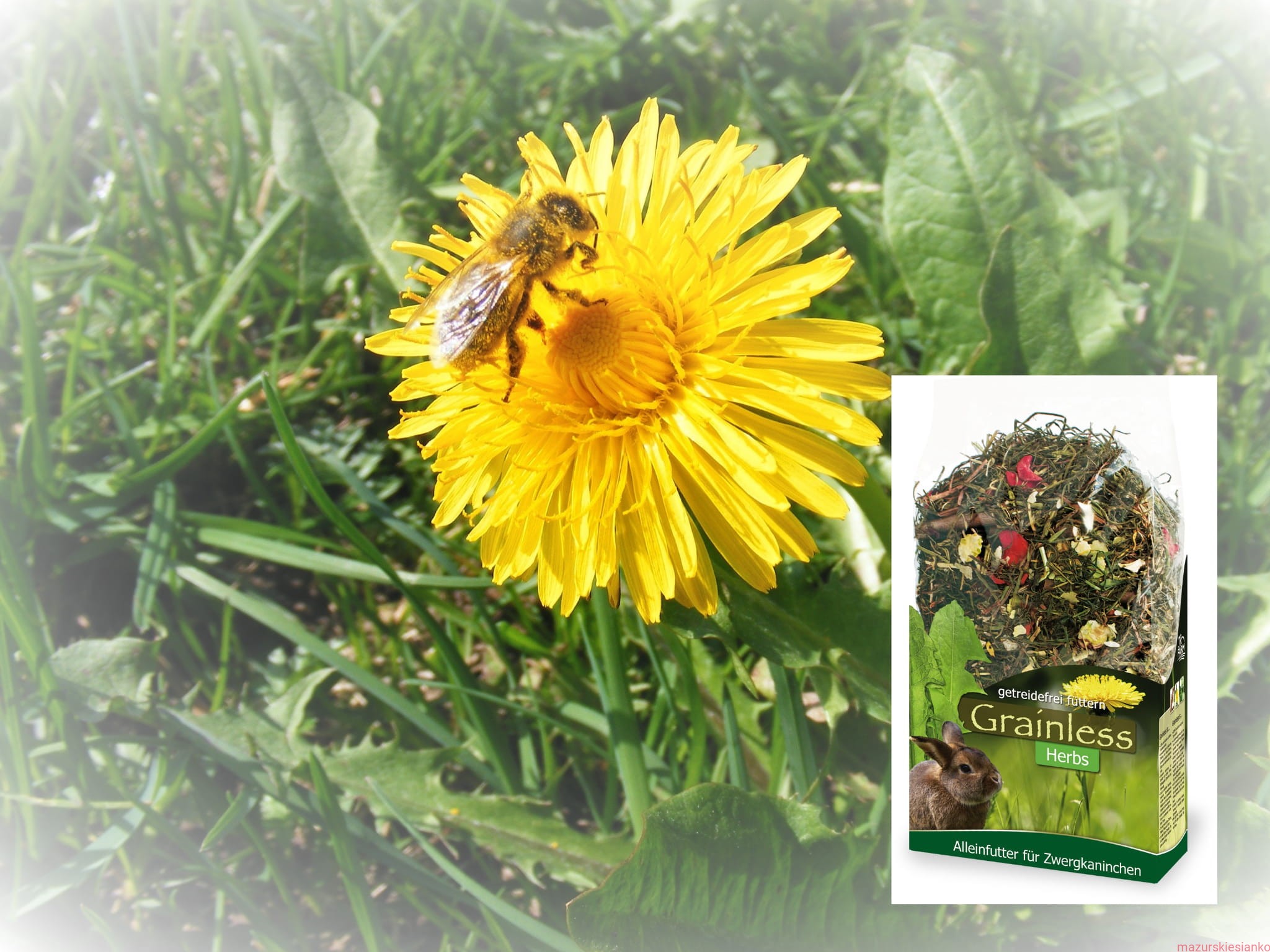 Grainless Herbs to mieszanka pełnowartościowa składająca się z wielu długowłóknistych traw i ziół, tworzących wraz z wieloma warzywami i kwiatami optymalną podstawę zdrowego żywienia królików.