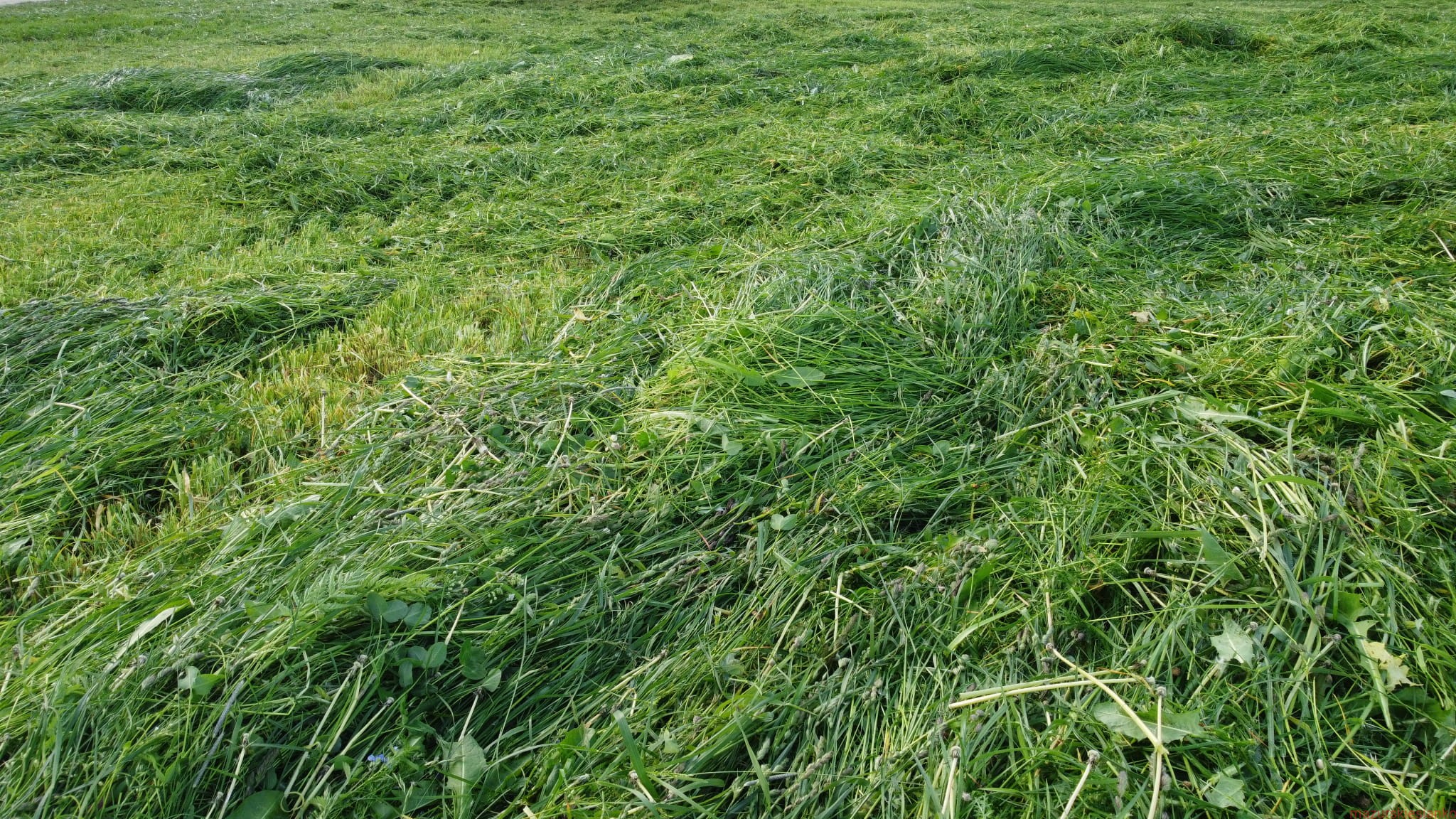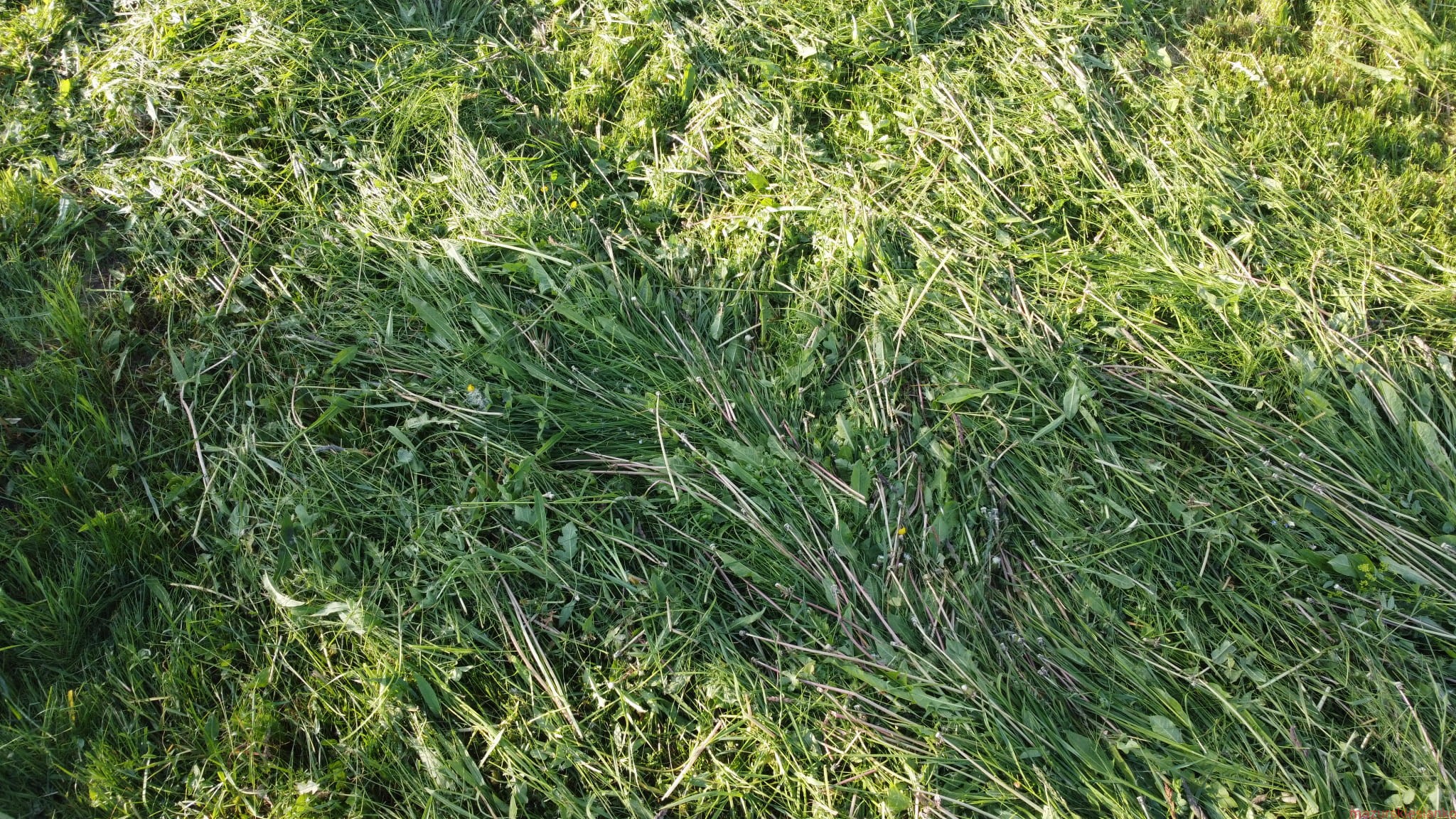 Tegoroczne siano będzie "wypłowiałe" ze względu na wypłukanie przez ulewne deszcze. Będzie też niestety miejscami "zgrzytać" między zębami - jak nie przymierzając świeże truskawki ;) Deszcze i wiatry często przybijały trawy do ziemi co powodowało odbijanie piachu, którego część pozostała w sianie. Część traw będzie też niestety z nekrozami - tzn. brązowe elementy roślin, które "uschły" z nadmiaru wody... :( Zdjęcie nr. 1