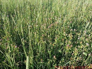 Nie jest to w 100% "czysta" koniczyna - wartość siana podwyższa dodatek wiechlin (kuzynki tymotki), samej tymotki oraz traw podszyciowych, które były wysiewane jako rośliny chroniące, ale przez przebieg pogody miejscami jest ich do 50% ;)