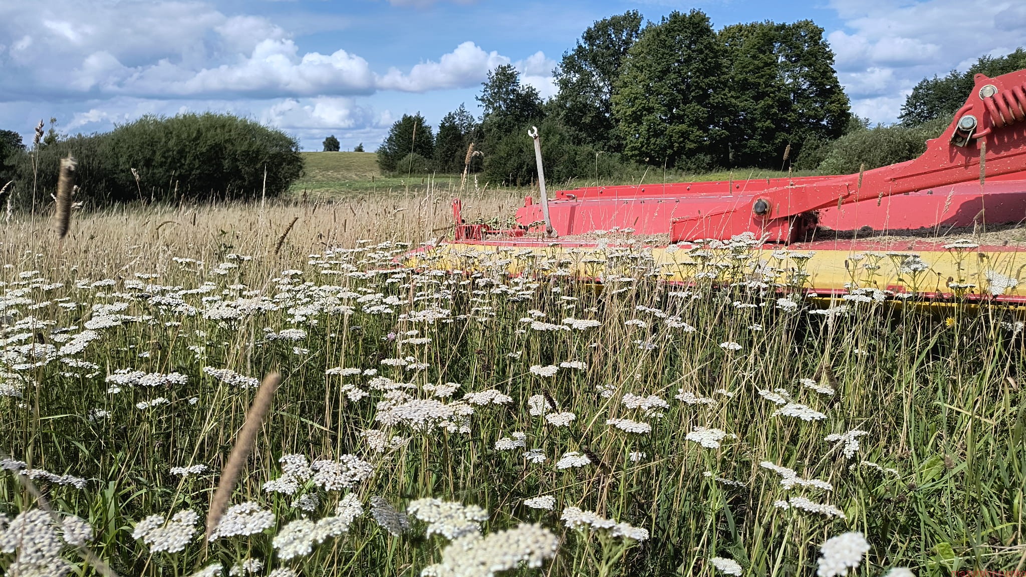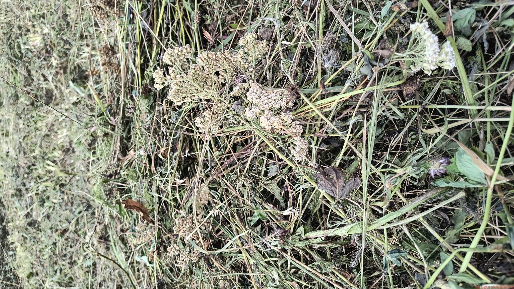 W tym roku część siana kosiłem z końcem lipca - więc skład będzie wzbogacony o liczne zioła kwitnące w pełni lata, widoczne gatunki to krwawnik i babka lancetowata.