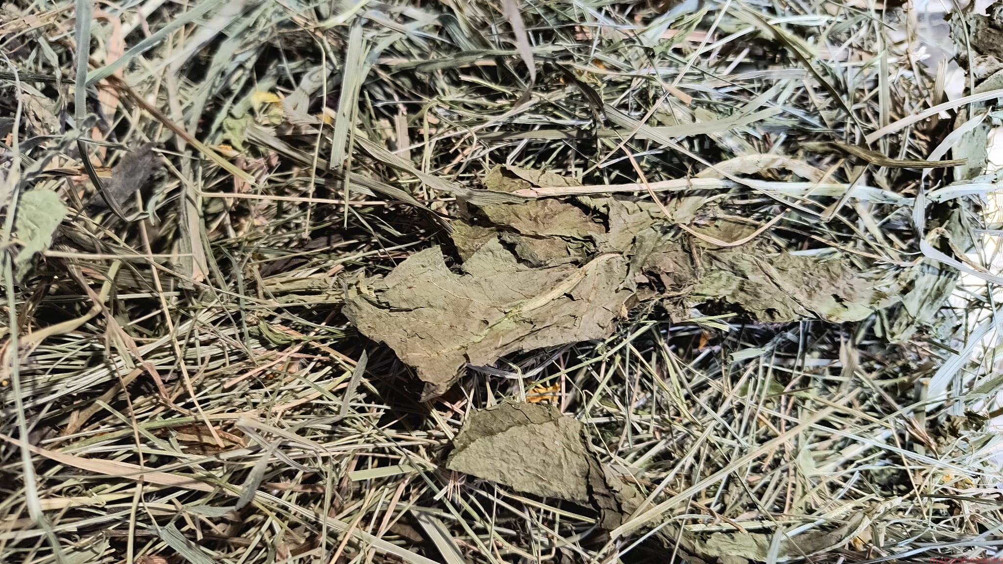 W sianie można znaleźć także inne polne zioła np. dobrze zachowane liście mniszka (ostatnie zdjęcie). Co świadczy o bardzo ostrożnym obchodzeniu się z sianem przez odpowiedni dobór maszyn pozwalający - mimo dość wysokiego stopnia zgniotu prasy - na zachowanie delikatnej struktury roślin :)